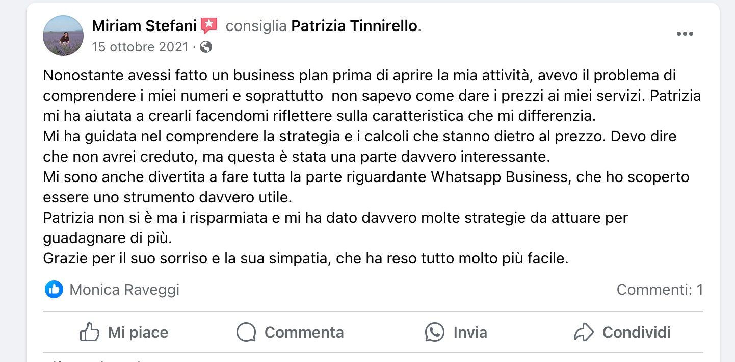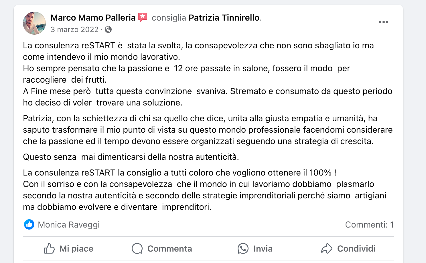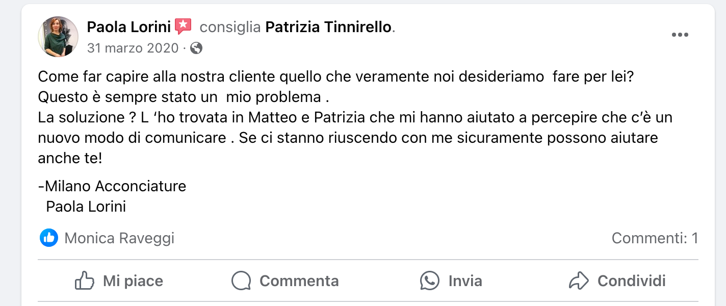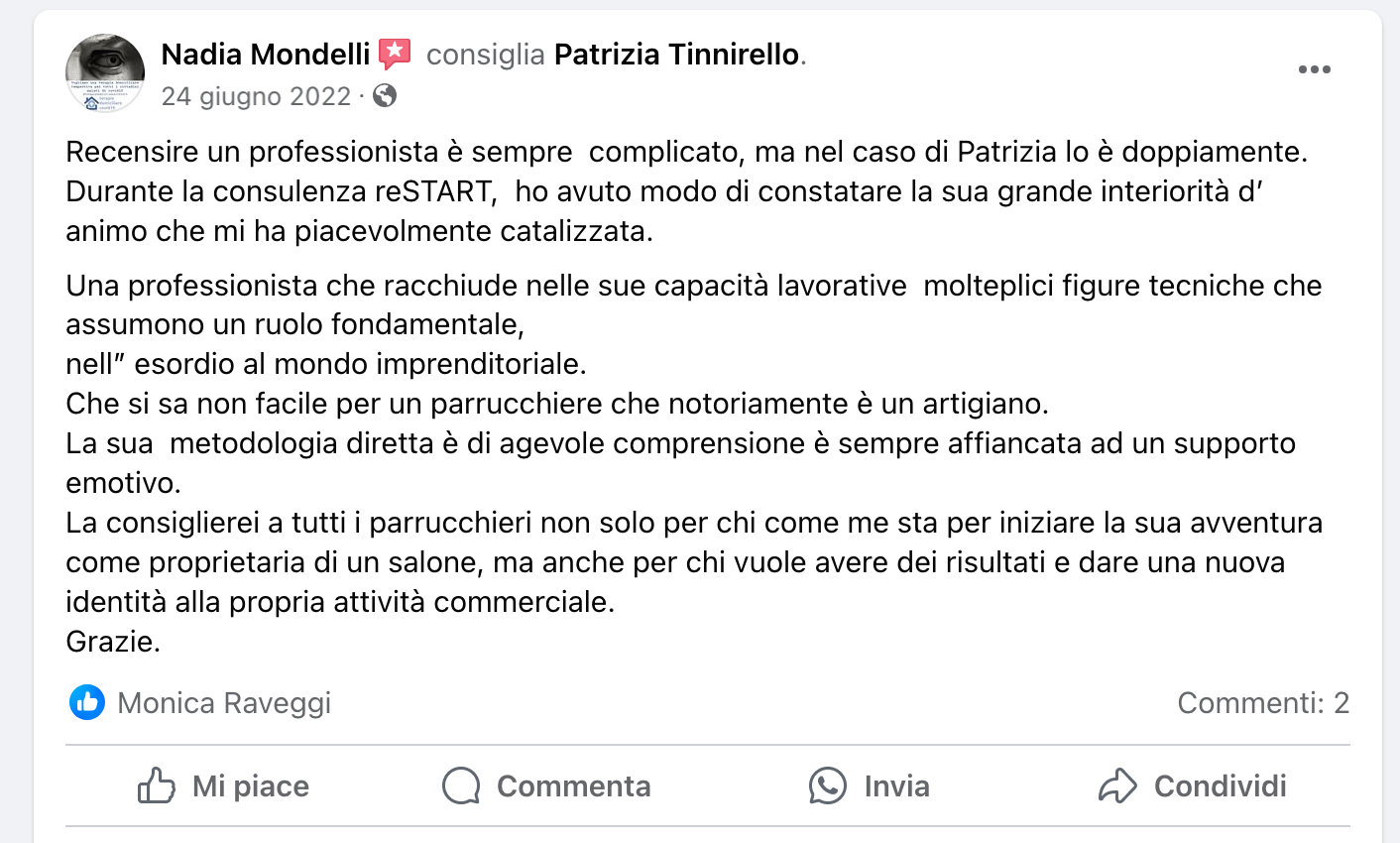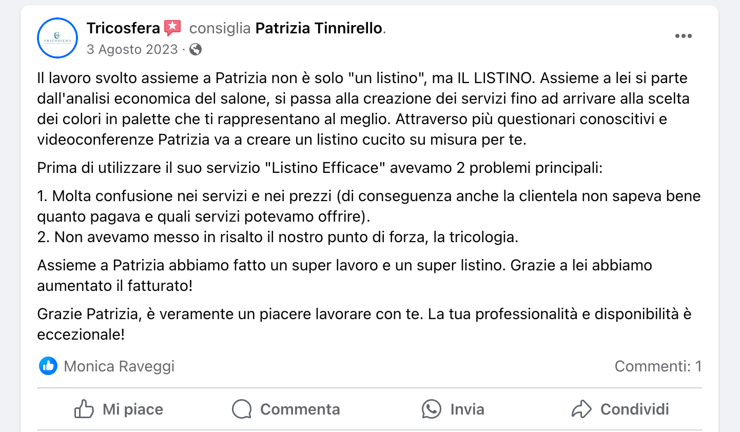 Sono Patrizia Tinnirello, tua ex collega. Ho avuto il salone per ben 37 anni.